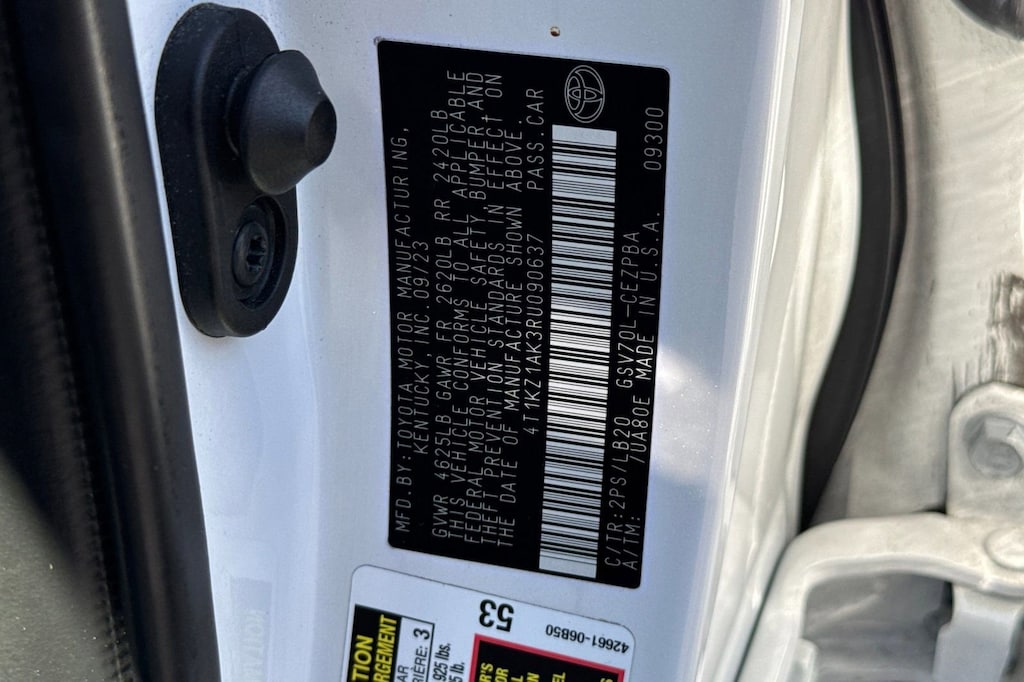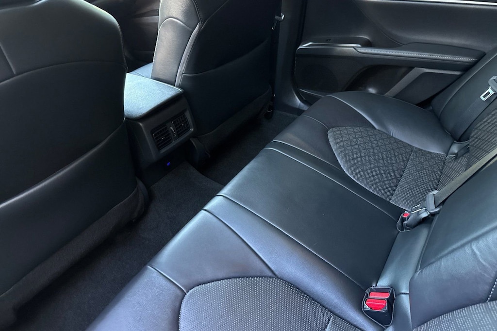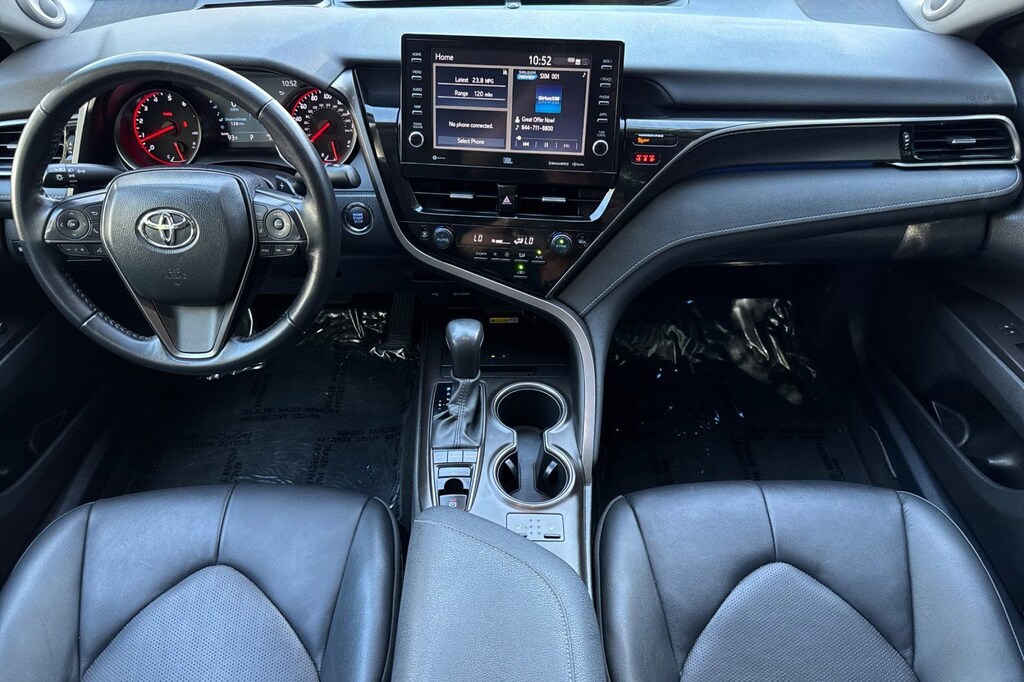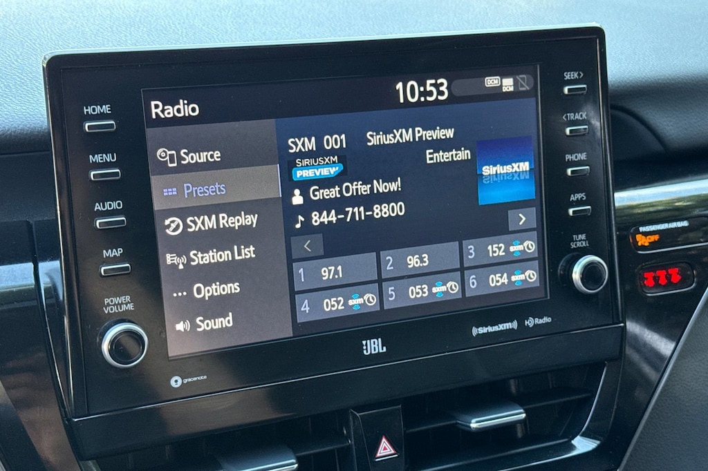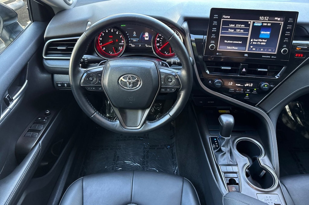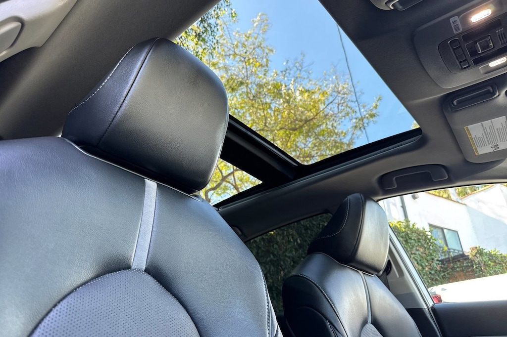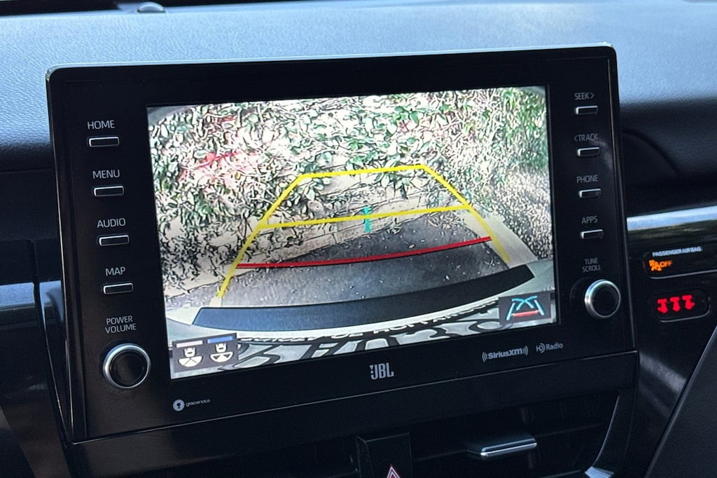 Black w/Perforated Leather Seat Trim. Toyota Gold Certified Certified, Black w/Perforated Leather Seat Trim, 4-Wheel Disc Brakes, 9 Speakers, ABS brakes, Air Conditioning, Alloy wheels, AM/FM radio: SiriusXM, Apple CarPlay/Android Auto, Auto High-beam Headlights, Auto-dimming Rear-View mirror, Automatic temperature control, Brake assist, Bumpers: body-color, Compass, Delay-off headlights, Driver door bin, Driver vanity mirror, Dual front impact airbags, Dual front side impact airbags, Electronic Stability Control, Emergency communication system: Safety Connect (1-year trial), Exterior Parking Camera Rear, Four wheel independent suspension, Front anti-roll bar, Front Bucket Seats, Front Center Armrest, Front dual zone A/C, Front reading lights, Fully automatic headlights, Garage door transmitter: HomeLink, Heads-Up Display, Heated door mirrors, Heated front seats, Illuminated entry, Knee airbag, Leather steering wheel, Low tire pressure warning, Multi-Stage Heated Front Bucket Seats, Occupant sensing airbag, Outside temperature display, Overhead airbag, Overhead console, Panic alarm, Passenger door bin, Passenger vanity mirror, Perforated Leather Seat Trim, Power door mirrors, Power driver seat, Power moonroof, Power passenger seat, Power steering, Power windows, Radio data system, Radio: Audio Plus w/JBL, Rear anti-roll bar, Rear reading lights, Rear seat center armrest, Rear side impact airbag, Rear window defroster, Remote keyless entry, Security system, Speed control, Speed-sensing steering, Split folding rear seat, Spoiler, Steering wheel mounted audio controls, Tachometer, Telescoping steering wheel, Tilt steering wheel, Traction control, Trip computer, Turn signal indicator mirrors, Variably intermittent wipers, and Wheels: 19" x 8J Alloy.