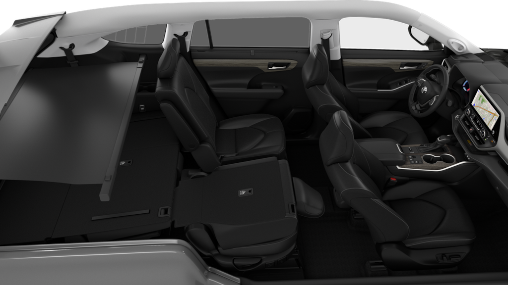 - 7-passenger seating with second-row fold-down captain's chairs and fold-down inboard armrests, adjustable headrests and two cup holders mounted on the floor and 60/40 split, fold-flat third-row seats with sliding headrests and recline function