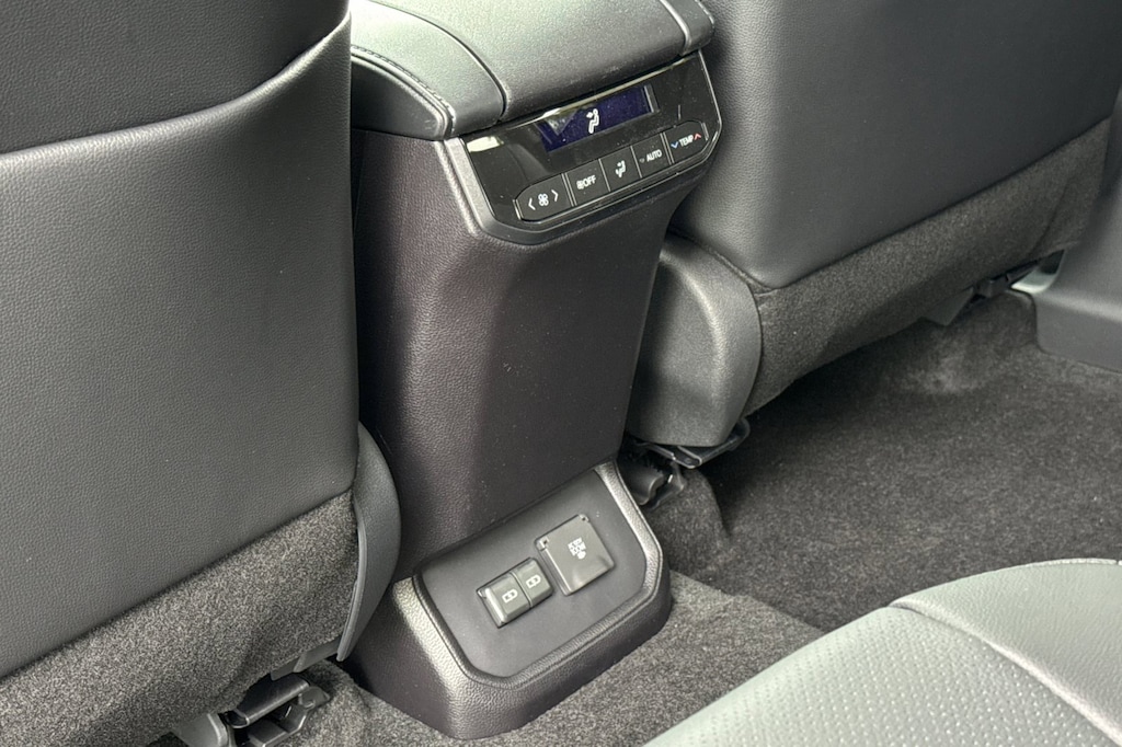 - Five USB ports (one USB-A media port and four USB-C charging ports) and two 12V outlets