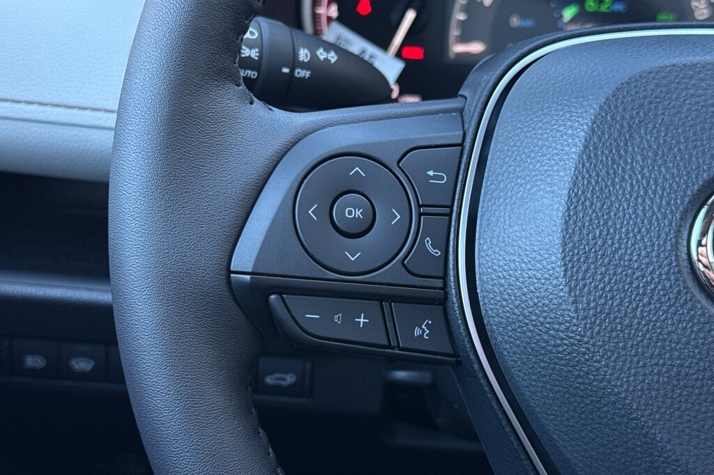 - Leather-trimmed tilt/telescopic 3-spoke steering wheel with silver accent and controls for audio, Multi-Information Display (MID, Bluetooth (R) hands-free phone, voice-command, Dynamic Radar Cruise Control (DRCC), Lane Departure Alert (LDA), and Lane Trace Assist (LTA)