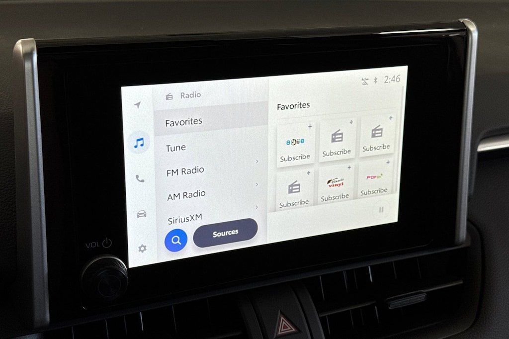 - 8-in. Toyota Audio Multimedia, six speakers, with wireless Apple CarPlay(R) Android Auto compatible, SiriusXM(R) with 3-month trial. See toyota.com/audio-multimedia for details.