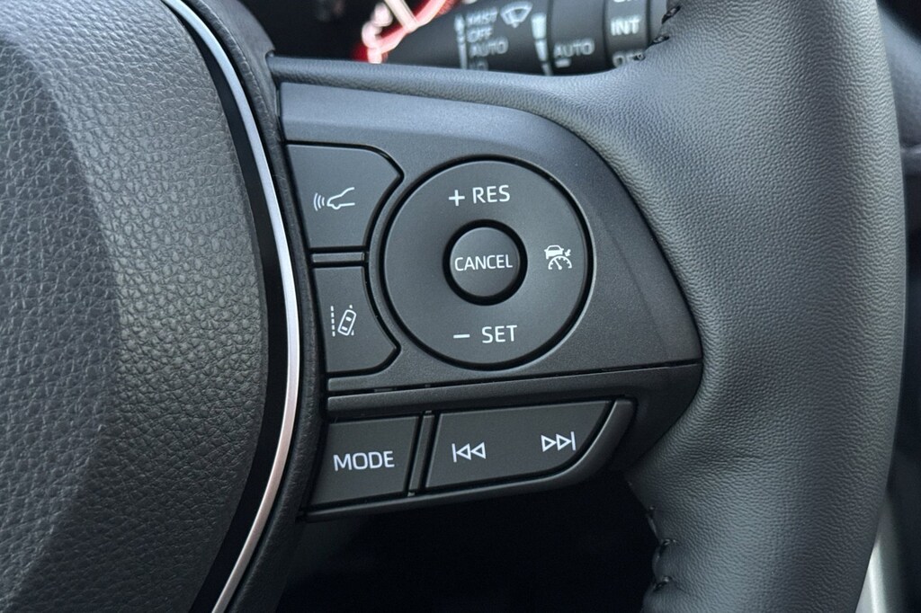 - Leather-trimmed tilt/telescopic 3-spoke steering wheel with silver accent and controls for audio, Multi-Information Display (MID, Bluetooth (R) hands-free phone, voice-command, Dynamic Radar Cruise Control (DRCC), Lane Departure Alert (LDA), and Lane Trace Assist (LTA)