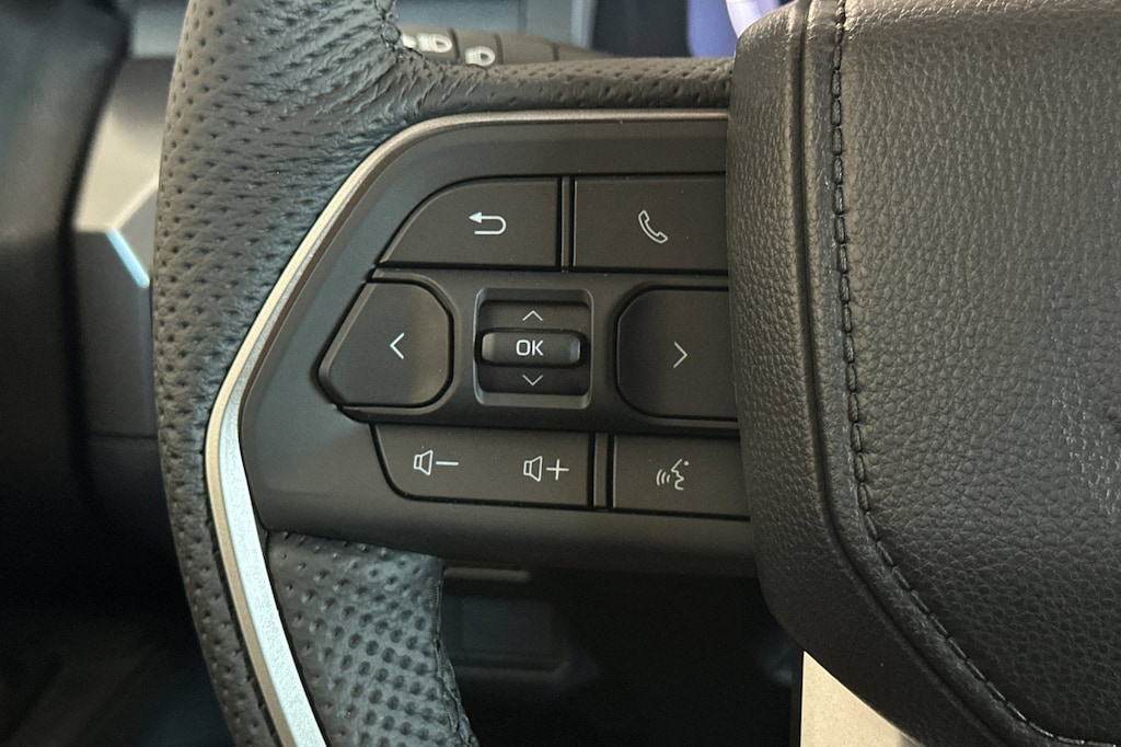 - Leather-trimmed manual tilt/telescopic steering wheel with phone, audio, display/infotainment, and Driver Assist controls