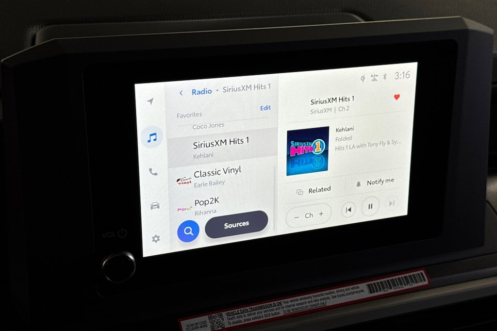 - 8-in. Toyota Audio Multimedia display with 6-speaker audio system, wireless Apple CarPlay(R) Android Auto compatibility, SiriusXM(R) 3-month trial. See toyota.com/connected-services for details.