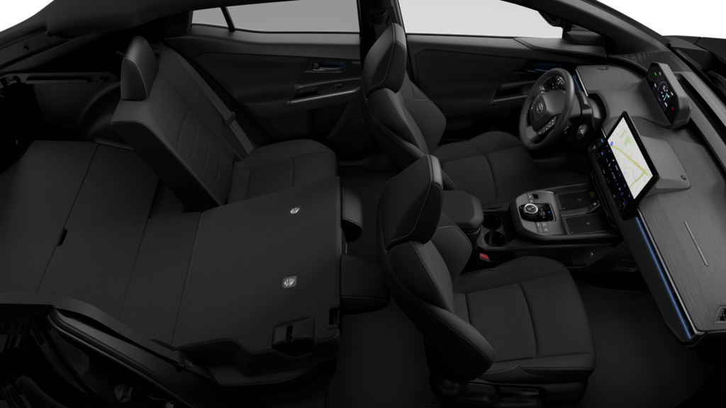- 60/40 split, reclining fold-flat rear seats with center armrest and cup holders.