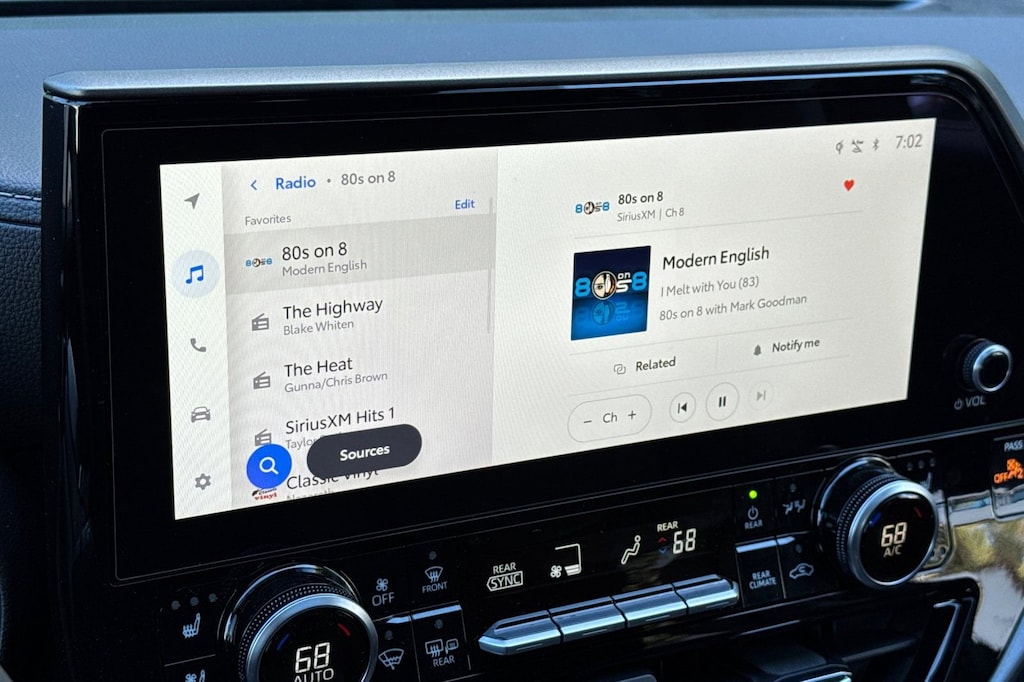 - 12.3-in. Toyota audio multimedia with wireless apple carplay®& android auto™compatibility, usb media port,four usb charge ports,hands-free phone capability and music streamingvia. Bluetooth. ®wireless technology, siriusxm® 3-month trial subscription.See toyota.Com/audio-multimedia for details.Apple carplay® requires a compatible iphone® with an active data plan. Check compatibility at. Https://www.Apple.Com/ios/carplay/. . Operability depends on network availability, a cellular connection and gps signal. Services vary by vehicle and are subject to change at any time without notice. Data charges may apply. To learn more, go to. Https://www.Toyota.Com/audio-multimedia/. . To learn more about toyota connected services data collection, use, sharing and retention practices, please visit. Https://www.Toyota.Com/support/privacy-notice/. . Apple carplay® is a registered trademark of apple inc.,Wireless use of android auto requires a compatible android 11.0+ phone and compatible active data plan. Check. G.Co/androidauto/requirements. For compatibility. Operability depends on network availability, a cellular connection, and gps signal. Services vary by vehicle and are subject to change at any time without notice. Data charges may apply. To learn more, go to. Https://www.Toyota.Com/audio-multimedia/. . To learn more about toyota's connected services data collection, use, sharing, and retention practices, please visit. Https://www.Toyota.Com/support/privacy-notice/. . Google, android, android auto, google maps and other marks are trademarks of google llc. Compatible android phone and compatible active data plan required.,May not be compatible with all mobile phones, smart devices, tablets, e-readers, mp3/wma players and like models.,May not be compatible with all mobile phones, smart devices, tablets, e-readers, mp3/wma players and like models.,A compatible. Bluetooth. ®-enabled phone must first be paired. Phone performance depends on software, coverage and carrier. The. Bluetooth. ® word mark and logos are registered trademarks of bluetooth sig, inc. Use of such marks by toyota is under license.,A compatible. Bluetooth. ®-enabled phone must first be paired. Phone performance depends on software, coverage and carrier. The. Bluetooth. ® word mark and logos are registered trademarks of bluetooth sig, inc. Use of such marks by toyota is under license.,Service will automatically stop at the end of your trial subscription period unless you decide to continue service. Trial is non-transferable. If you do not wish to enjoy your trial, you can cancel by calling the number below. All siriusxm services require a subscription, each sold separately by siriusxm after the trial period. Service subject to the siriusxm customer agreement and privacy policy, visit siriusxm.Com for complete terms and how to cancel which includes online methods or calling 1-866-635-2349. Some services and features are subject to device capabilities and location availability. Satellite service not available in ak & hi. Content varies by siriusxm subscription plan. All fees, content and features are subject to change. Siriusxm and related logos are trademarks of sirius xm radio inc. And its respective subsidiaries.