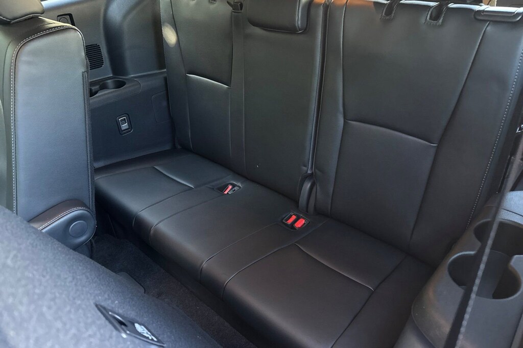 - 7-passenger seating with second-row fold-down captain's chairs and fold-down inboard armrests, adjustable headrests and two cup holders mounted on the floor; and 60/40 split, fold-flat third-row seats with sliding headrests and recline function.