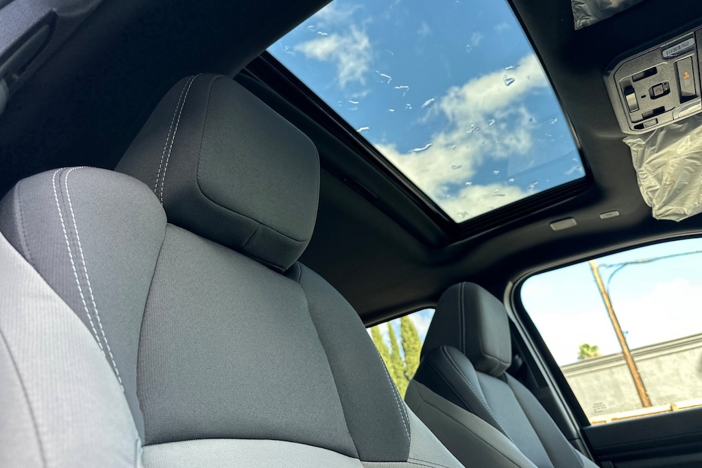 - Fabric-trimmed seats; 6-way manually adjustable driver and front passenger seats with 2-way power-adjustable lumbar support on driver's seat only.