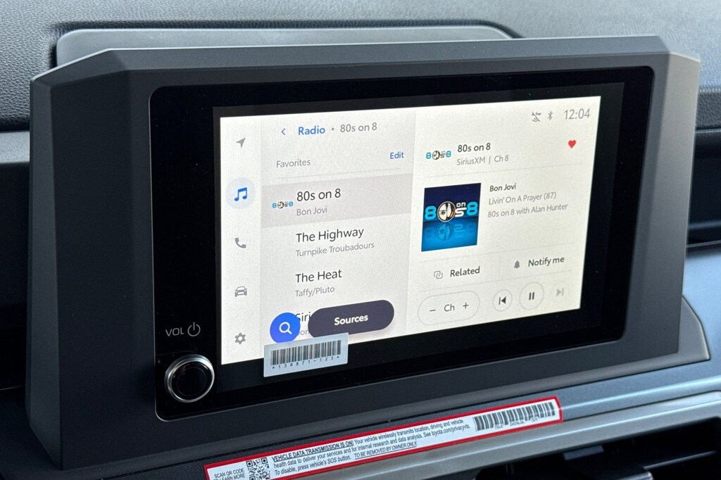 - 8-in. Toyota audio multimedia display with 6-speaker audio system, wireless apple carplay®& android auto™compatibility, siriusxm® 3-month trial subscription.See toyota.Com/connected-services for details.Apple carplay® requires a compatible iphone® with an active data plan. Check compatibility at. Https://www.Apple.Com/ios/carplay/. . Operability depends on network availability, a cellular connection and gps signal. Services vary by vehicle and are subject to change at any time without notice. Data charges may apply. To learn more, go to. Https://www.Toyota.Com/audio-multimedia/. . To learn more about toyota connected services data collection, use, sharing and retention practices, please visit. Https://www.Toyota.Com/support/privacy-notice/. . Apple carplay® is a registered trademark of apple inc.,Wireless use of android auto requires a compatible android 11.0+ phone and compatible active data plan. Check. G.Co/androidauto/requirements. For compatibility. Operability depends on network availability, a cellular connection, and gps signal. Services vary by vehicle and are subject to change at any time without notice. Data charges may apply. To learn more, go to. Https://www.Toyota.Com/audio-multimedia/. . To learn more about toyota's connected services data collection, use, sharing, and retention practices, please visit. Https://www.Toyota.Com/support/privacy-notice/. . Google, android, android auto, google maps, and other marks are trademarks of google llc. Compatible android phone and compatible active data plan required.,Service will automatically stop at the end of your trial subscription period unless you decide to continue service. Trial is non-transferable. If you do not wish to enjoy your trial, you can cancel by calling the number below. All siriusxm services require a subscription, each sold separately by siriusxm after the trial period. Service subject to the siriusxm customer agreement and privacy policy, visit siriusxm.Com for complete terms and how to cancel which includes online methods or calling 1-866-635-2349. Some services and features are subject to device capabilities and location availability. Satellite service not available in ak & hi. Content varies by siriusxm subscription plan. All fees, content and features are subject to change. Siriusxm and related logos are trademarks of sirius xm radio inc. And its respective subsidiaries.
