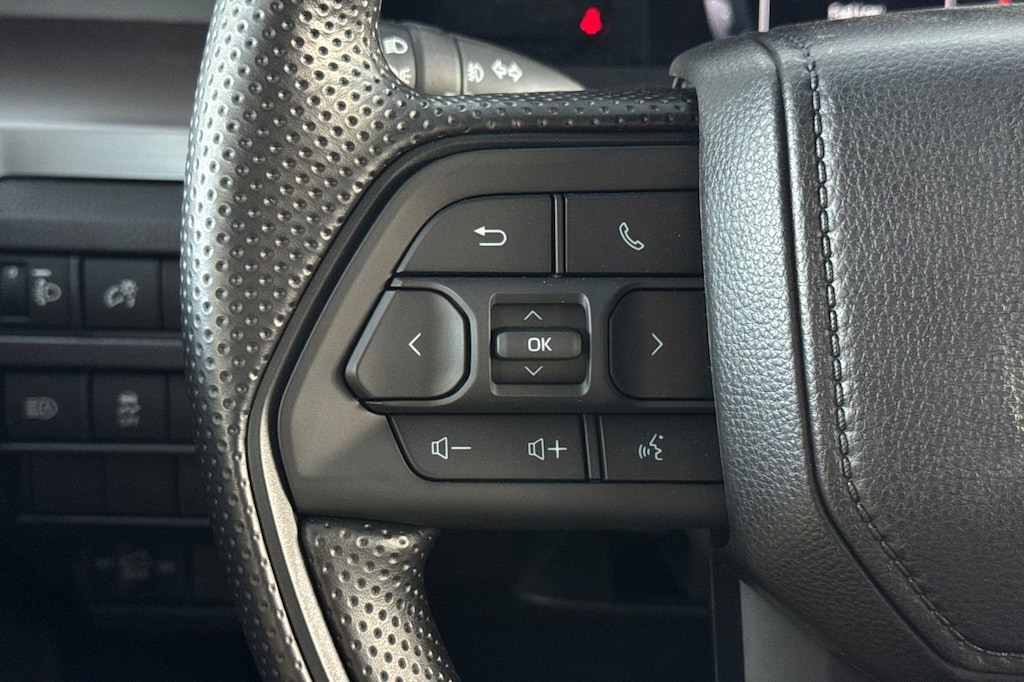 - Polyurethane manual tilt/telescopic steering wheel with phone, audio, display/infotainment, and driver assist controls.
