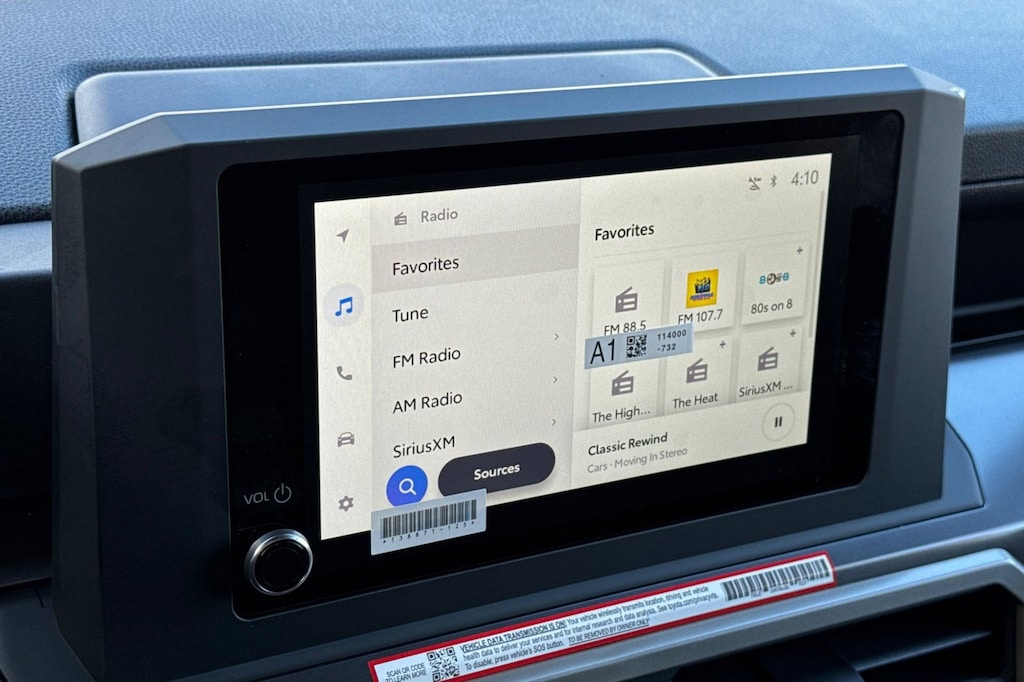 - 8-in. Toyota audio multimedia display with 6-speaker audio system, wireless apple carplay®& android auto™compatibility, siriusxm® 3-month trial subscription.See toyota.Com/connected-services for details.Apple carplay® requires a compatible iphone® with an active data plan. Check compatibility at. Https://www.Apple.Com/ios/carplay/. . Operability depends on network availability, a cellular connection and gps signal. Services vary by vehicle and are subject to change at any time without notice. Data charges may apply. To learn more, go to. Https://www.Toyota.Com/audio-multimedia/. . To learn more about toyota connected services data collection, use, sharing and retention practices, please visit. Https://www.Toyota.Com/support/privacy-notice/. . Apple carplay® is a registered trademark of apple inc.,Wireless use of android auto requires a compatible android 11.0+ phone and compatible active data plan. Check. G.Co/androidauto/requirements. For compatibility. Operability depends on network availability, a cellular connection, and gps signal. Services vary by vehicle and are subject to change at any time without notice. Data charges may apply. To learn more, go to. Https://www.Toyota.Com/audio-multimedia/. . To learn more about toyota's connected services data collection, use, sharing, and retention practices, please visit. Https://www.Toyota.Com/support/privacy-notice/. . Google, android, android auto, google maps, and other marks are trademarks of google llc. Compatible android phone and compatible active data plan required.,Service will automatically stop at the end of your trial subscription period unless you decide to continue service. Trial is non-transferable. If you do not wish to enjoy your trial, you can cancel by calling the number below. All siriusxm services require a subscription, each sold separately by siriusxm after the trial period. Service subject to the siriusxm customer agreement and privacy policy, visit siriusxm.Com for complete terms and how to cancel which includes online methods or calling 1-866-635-2349. Some services and features are subject to device capabilities and location availability. Satellite service not available in ak & hi. Content varies by siriusxm subscription plan. All fees, content and features are subject to change. Siriusxm and related logos are trademarks of sirius xm radio inc. And its respective subsidiaries.