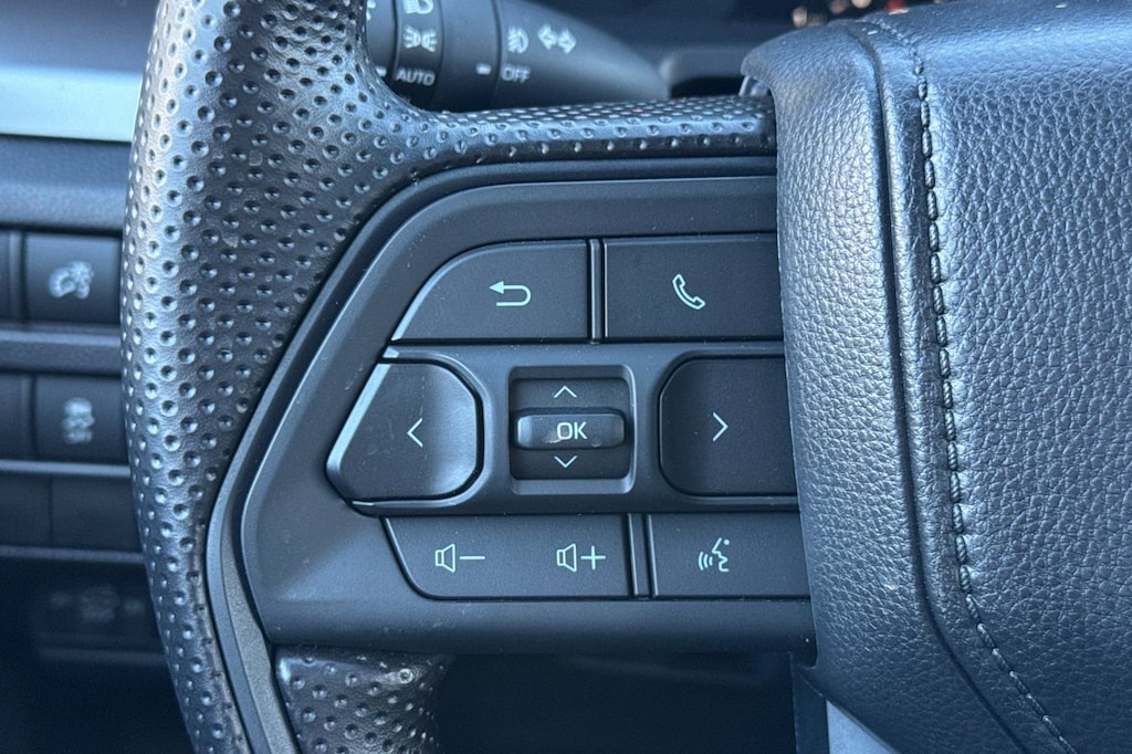 - Polyurethane manual tilt/telescopic steering wheel with phone, audio, display/infotainment, and driver assist controls.