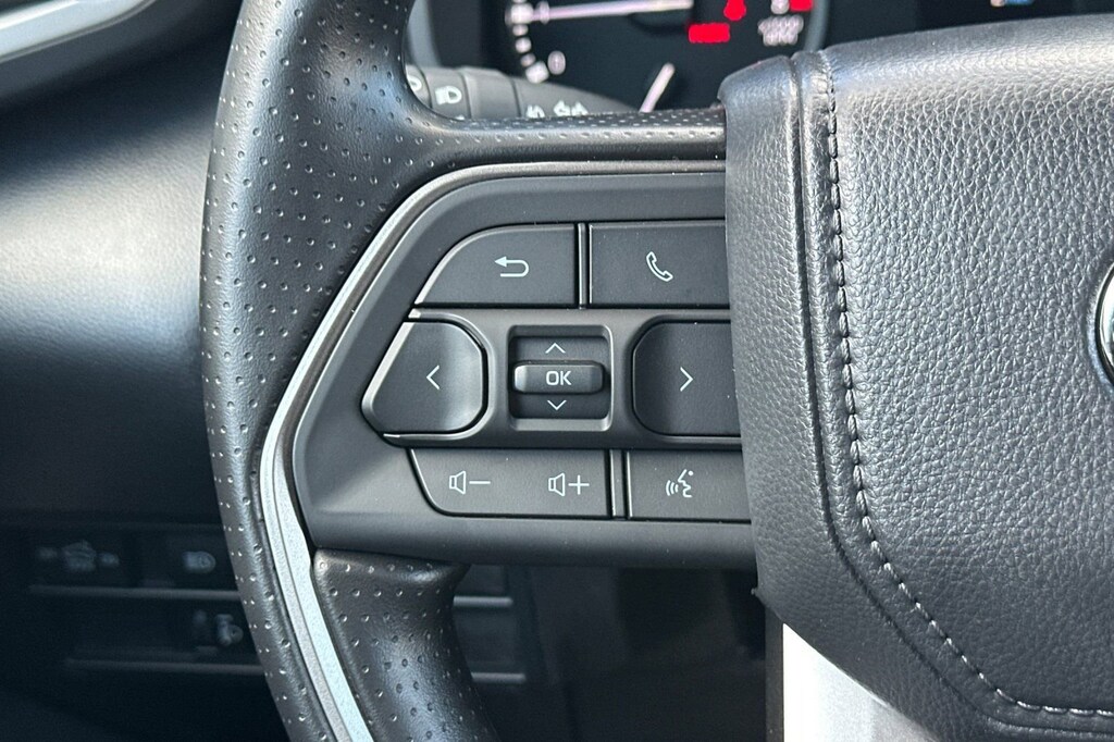 - Polyurethane manual tilt/telescopic steering wheel with phone, audio, display/infotainment, and driver assist controls.