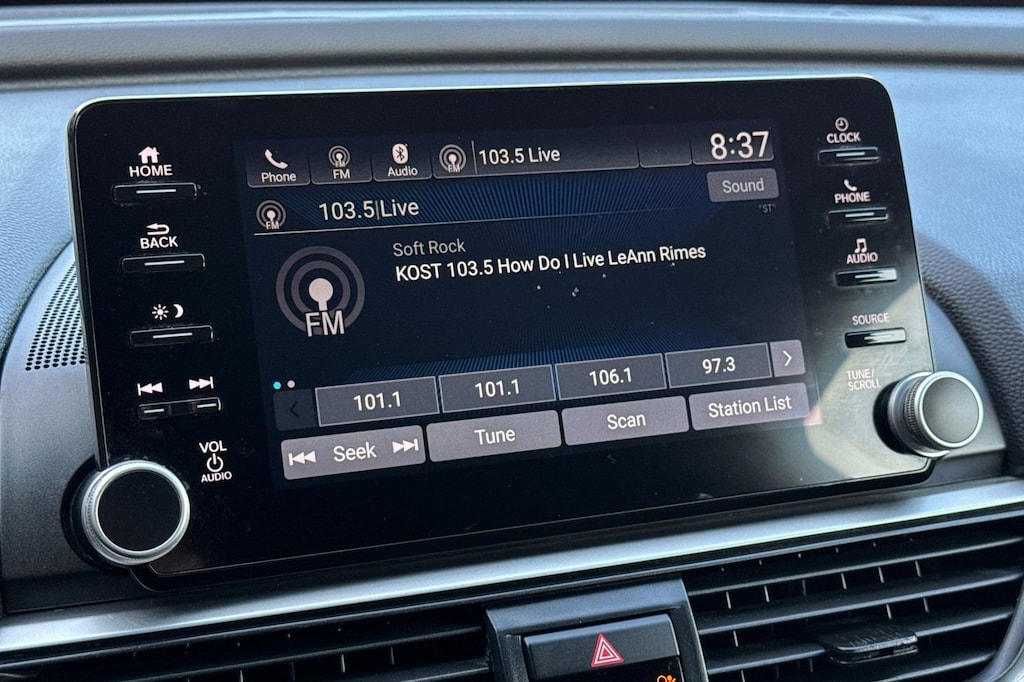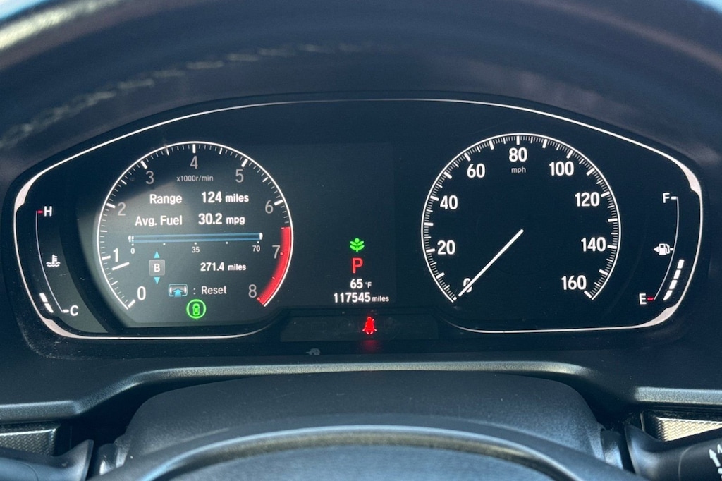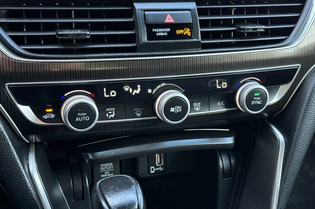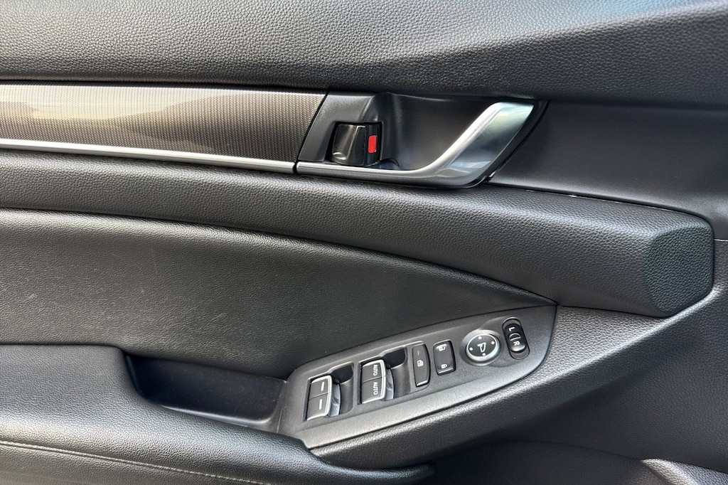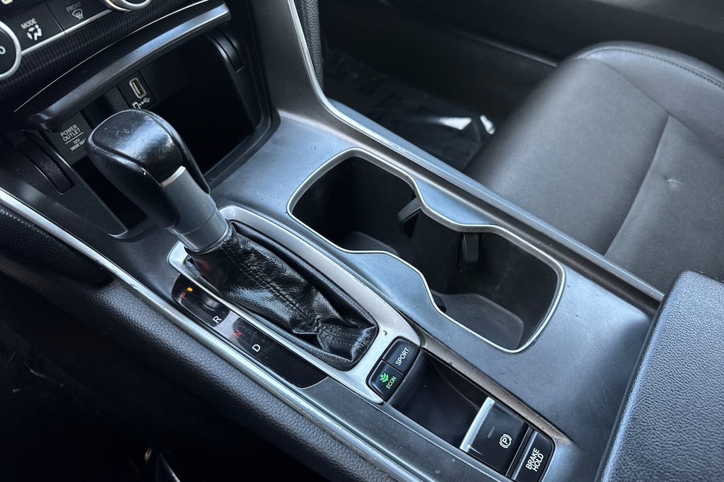 Black Leather. Black Leather, 4-Wheel Disc Brakes, 8 Speakers, ABS brakes, Adaptive Cruise Control: Adaptive Cruise Control (ACC) with Low-Speed Follow, Air Conditioning, Alloy wheels, AM/FM radio, Apple CarPlay/Android Auto, Auto High-beam Headlights, Automatic temperature control, Brake assist, Bumpers: body-color, Cloth Seat Trim, Delay-off headlights, Driver door bin, Driver vanity mirror, Dual front impact airbags, Dual front side impact airbags, Electronic Stability Control, Emergency communication system: HondaLink, Exterior Parking Camera Rear, Forward collision: Collision Mitigation Braking System (CMBS) + FCW mitigation, Four wheel independent suspension, Front anti-roll bar, Front Bucket Seats, Front Center Armrest, Front dual zone A/C, Front fog lights, Front reading lights, Fully automatic headlights, Illuminated entry, Knee airbag, Lane Departure Warning System, Leather Shift Knob, Leather steering wheel, Low tire pressure warning, Occupant sensing airbag, Outside temperature display, Overhead airbag, Overhead console, Panic alarm, Passenger door bin, Passenger vanity mirror, Power door mirrors, Power driver seat, Power steering, Power windows, Radio data system, Radio: 180-Watt AM/FM Audio System, Rear anti-roll bar, Rear seat center armrest, Rear window defroster, Remote keyless entry, Security system, Speed control, Speed-sensing steering, Speed-Sensitive Wipers, Split folding rear seat, Spoiler, Steering wheel mounted audio controls, Tachometer, Telescoping steering wheel, Tilt steering wheel, Traction control, Trip computer, Variably intermittent wipers, and Wheels: 19" Machine-Finished Alloy w/Black Inserts.