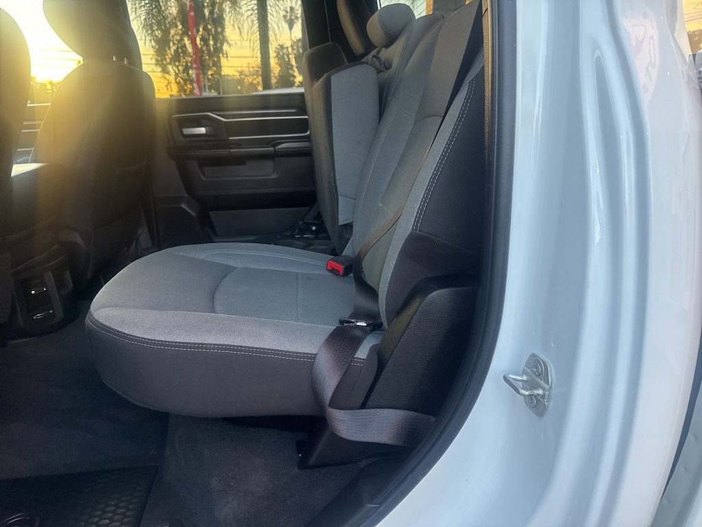 Cold Weather Group (Engine Block Heater), Heavy Duty Snow Plow Prep Group (220 Amp Alternator), Level 1 Equipment Group (2 Way Rear Headrest Seat, 2nd Row In Floor Storage Bins, 4 Way Front Headrests, 40/20/40 Split Bench Seat, 4G LTE Wi-Fi Hot Spot, 8.4" Touchscreen Display, Apple CarPlay, Auto Power-Folding Mirrors, Big Horn IP Badge, Black Exterior Mirrors, Bluetooth Handsfree Phone & Audio, Center Hub, Connectivity - US/Canada, Dual Glove Boxes, Exterior Mirrors Courtesy Lamps, Exterior Mirrors w/Heating Element, Exterior Mirrors w/Supplemental Signals, Foam Bottle Insert (Door Trim Panel), Footwell Courtesy Lamp, For Details, Visit DriveUconnect.com, For More Info, Call 800-643-2112, Forward & Reverse Utility Lights, Front Armrest w/Cupholders, Front Center Seat Cushion Storage, Front Fog Lamps, Global Telematics Box Module (TBM), Glove Box Lamp, Google Android Auto, GPS Antenna Input, Integrated Center Stack Radio, Integrated Voice Command w/Bluetooth, Leather Wrapped Steering Wheel, Locking Lower Glove Box, Mirror Running Lights, Power 2-Way Driver Lumbar Adjust, Power Adjust Mirrors, Power Adjustable Convex Aux Mirrors, Power Heated Fold Telescope Mirrors, Power Telescoping Mirrors, Radio: Uconnect 5 W w/8.4" Display (A62), Rear Dome w/On/Off Switch Lamp, Remote USB Port - Charge Only, Selectable Tire Fill Alert, SiriusXM Radio Service, SiriusXM Satellite Radio, Steering Wheel Mounted Audio Controls, Storage Tray, and Wheels: 18" x 8.0" Polished Aluminum), Level 1 Equipment Group w/2Y, Off Road Package (Tow Hooks), Quick Order Package 2HZ Big Horn, 3.73 Axle Ratio, 4-Wheel Disc Brakes, 6 Speakers, ABS brakes, Active Noise Control System, Air Conditioning, Anti-Spin Differential Rear Axle, Brake assist, Bumpers: chrome, Center Stack Storage Drawer, Chrome Flat Cab-Length Side Steps, Cloth 40/20/40 Bench Seat, Compass, Delay-off headlights, Driver door bin, Dual front impact airbags, Dual front side impact airbags, Electronic Stability Control, Electronically Controlled Throttle, Emergency communication system: SiriusXM Guardian, Front anti-roll bar, Front Center Armrest w/Storage, Front License Plate Bracket, Front reading lights, Fully automatic headlights, Heated door mirrors, Illuminated entry, Low tire pressure warning, Manual Adjust 4-Way Driver Seat, MOPAR Spray In Bedliner, Occupant sensing airbag, Outside temperature display, Overhead airbag, Overhead console, Panic alarm, ParkSense Front/Rear Park Assist System, ParkView Rear Back-Up Camera, Passenger door bin, Passenger vanity mirror, Power door mirrors, Power steering, Power windows, Premium Cloth 40/20/40 Bench Seat (DISC), Radio data system, Radio: Uconnect 3 w/5" Display, Radio: Uconnect 5 W w/8.4" Display, Rear anti-roll bar, Rear Backup Alarm, Rear Folding Seat, Rear seat center armrest, Rear step bumper, Rear Window Defroster, Remote keyless entry, Speed control, Tachometer, Tilt steering wheel, Tip Start, Traction control, Trip computer, Turn signal indicator mirrors, Variably intermittent wipers, Voltmeter, and Wheels: 18" x 8.0" Steel Chrome ClaD.
