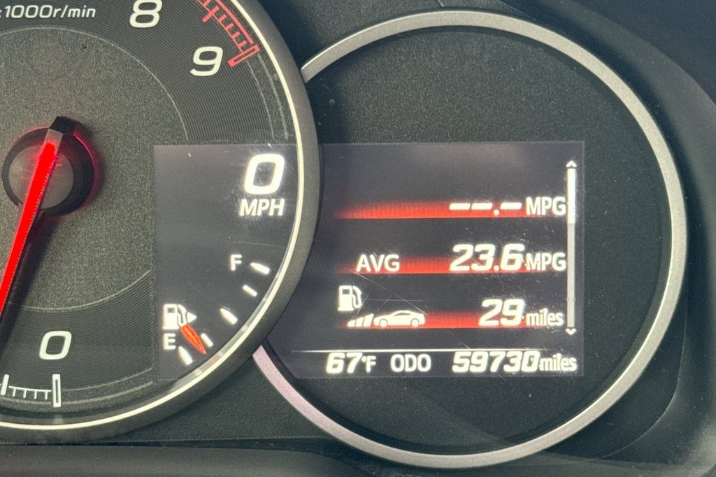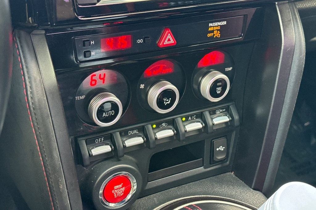 Popular Package #1 (Adapter Plate, Alloy Wheel Locks, Auto-Dimming Mirror w/Compass & HomeLink, Cargo Tray, Rear Bumper Applique, and Red Footwell Illumination Kit), Standard Model, 4-Wheel Disc Brakes, 8 Speakers, ABS brakes, Air Conditioning, Alcantara Upholstery w/Red Leather Bolsters, Alloy wheels, AM/FM radio: SiriusXM, Automatic temperature control, Brake assist, Bulk Kit Bag 3 PIN, Bumpers: body-color, CD player, Delay-off headlights, Driver door bin, Driver vanity mirror, Dual front impact airbags, Dual front side impact airbags, Electronic Stability Control, Exterior Parking Camera Rear, Four wheel independent suspension, Front anti-roll bar, Front Bucket Seats, Front dual zone A/C, Front reading lights, Fully automatic headlights, Heated door mirrors, Heated front seats, Illuminated entry, Leather Shift Knob, Leather steering wheel, Low tire pressure warning, Navigation System, Occupant sensing airbag, Outside temperature display, Overhead airbag, Panic alarm, Passenger door bin, Passenger vanity mirror, Performance Design Front Heated Bucket Seats, Power door mirrors, Power steering, Power windows, Radio data system, Radio: Subaru STARLINK 7.0" Multimedia Nav System, Rear anti-roll bar, Rear window defroster, Remote keyless entry, Security system, Speed control, Spoiler, STARLINK/Apple CarPlay/Android Auto, Steering wheel mounted audio controls, Tachometer, Telescoping steering wheel, Tilt steering wheel, Traction control, Trip computer, Variably intermittent wipers, Voltmeter, and Wheels: 18" x 7.5" Matte Bronze Finish Alloy.