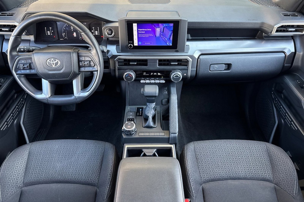 4WD, Black Cloth, ABS brakes, Active Cruise Control, Alloy wheels, Electronic Stability Control, Front dual zone A/C, Heated door mirrors, Illuminated entry, Low tire pressure warning, Remote keyless entry, Traction control. Toyota Gold Certified Certified, 4WD, Black Cloth, ABS brakes, Active Cruise Control, Alloy wheels, Electronic Stability Control, Front dual zone A/C, Heated door mirrors, Illuminated entry, Low tire pressure warning, Remote keyless entry, Traction control, 4-Wheel Disc Brakes, 8 Speakers, Air Conditioning, AM/FM radio: SiriusXM, Anti-whiplash front head restraints, Apple CarPlay/Android Auto, Auto High-beam Headlights, Automatic temperature control, Brake assist, Bumpers: body-color, Driver door bin, Driver vanity mirror, Dual front impact airbags, Dual front side impact airbags, Emergency communication system: Safety Connect (1-year trial), Exterior Parking Camera Rear, Fabric Seat Trim (FA), Front anti-roll bar, Front Bucket Seats, Front Center Armrest, Front fog lights, Front reading lights, Front wheel independent suspension, Knee airbag, Leather Shift Knob, Leather steering wheel, Occupant sensing airbag, Outside temperature display, Overhead airbag, Overhead console, Panic alarm, Passenger door bin, Passenger vanity mirror, Power door mirrors, Power steering, Power windows, Radio: 8" Audio, Rear anti-roll bar, Rear seat center armrest, Rear side impact airbag, Rear window defroster, Rear window wiper, Security system, Speed control, Speed-sensing steering, Split folding rear seat, Spoiler, Steering wheel mounted audio controls, Tachometer, Telescoping steering wheel, Tilt steering wheel, Trip computer, Variably intermittent wipers, and Wheels: 17" Dark-Gray Painted Alloy.